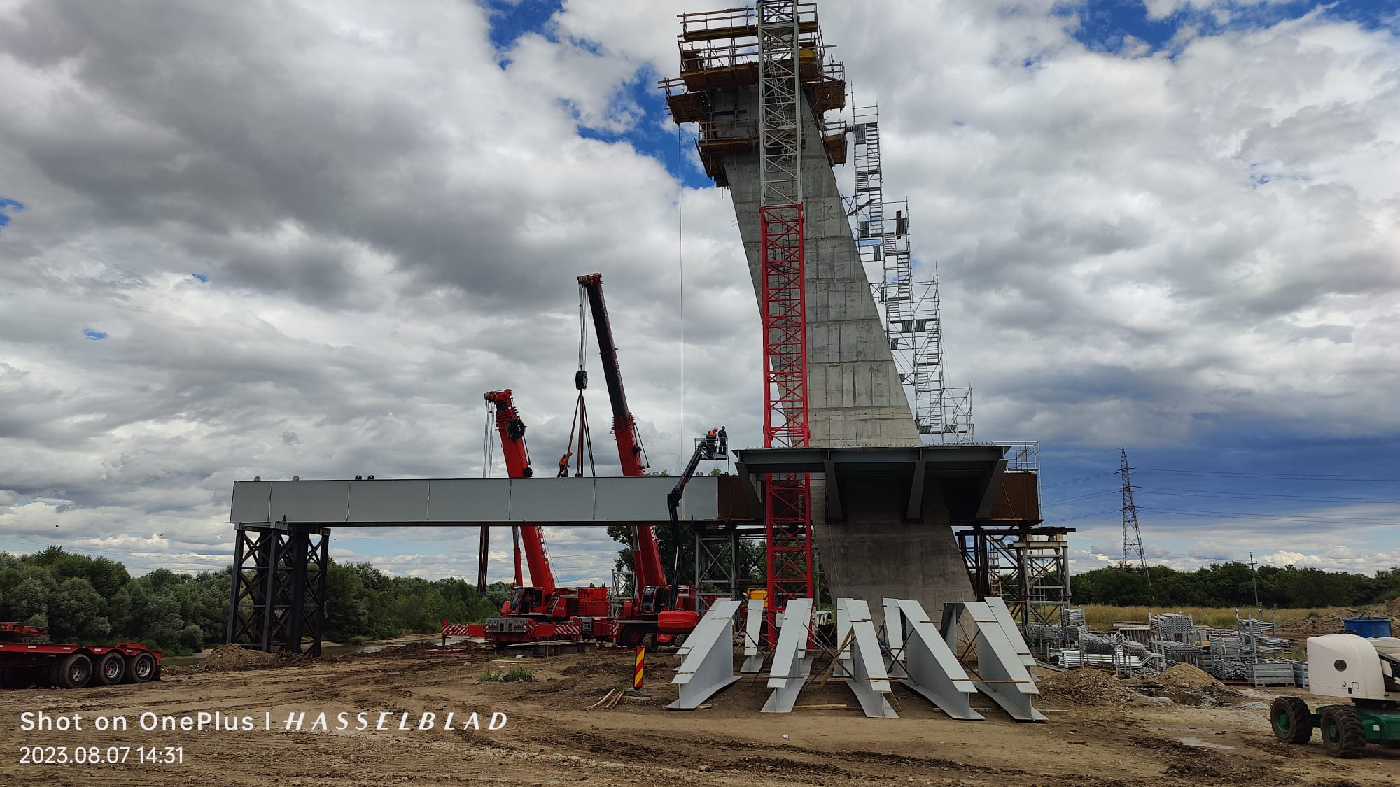 Lucrările continua la noul pod peste Mureș. Primul element de tablier a fost montat cu succes.